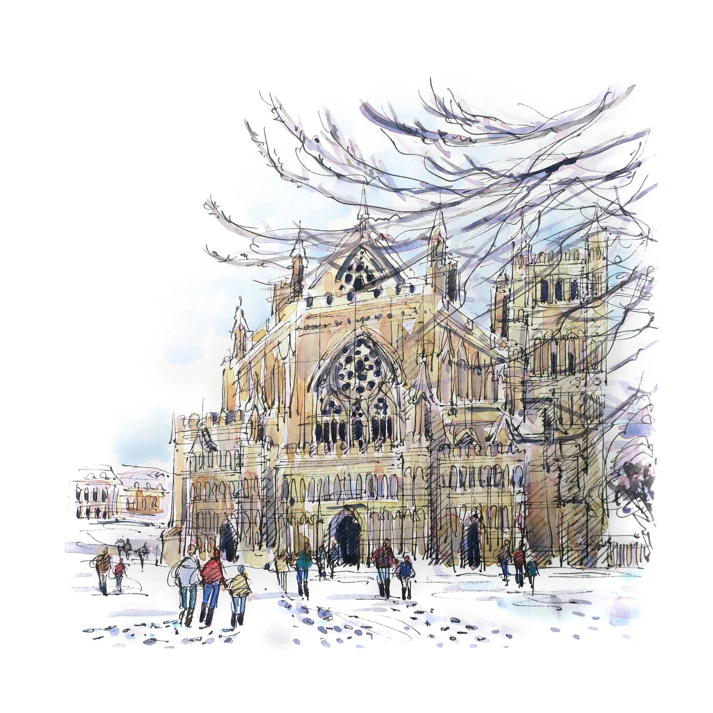 Exeter Cathedral under a blanket of snow